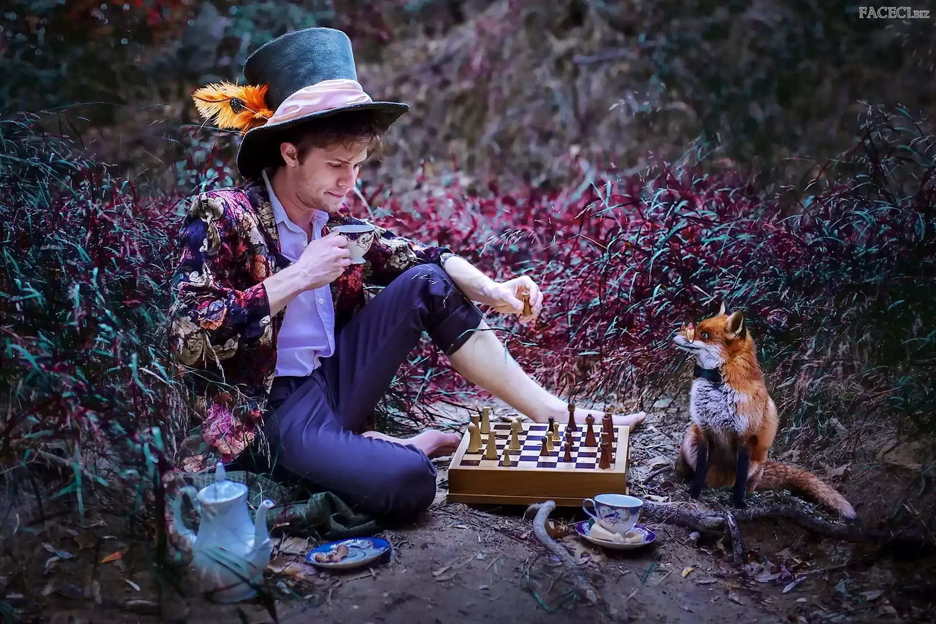 Trawa, Gra, Mężczyzna, Lis, Szachy